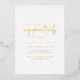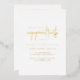 Invitation classique et élégante de fiançailles avec une mise en page simple avec "fiançailles" dans un script moderne. Tout le texte sur le devant est en papier or. La disposition épurée et minimaliste de cette invitation à la fête de fiançailles est idéale pour une célébration traditionnelle et formelle.