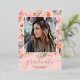 Moderne chic pêche corail floral floral floral floral aquarelle script de graduation de la photo maison ouverte avec de vrai feuille d'or rose sur rose. Ajoutez 3 de vos photos préférées avec une élégante calligraphie script et un collage de grille photo.