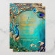 Invitation En Aluminium Peacock plumes iridiscent Art nouveau luxe