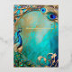 Un seul grand paon de couleur se tient sur le côté gauche de cette invitation avec ses plumes de queue et est encadré par un bleu turquoise marbré pâle, russet et bleu océanique arrière - plan orné de plumes de paon et d'un cadre d'ornement Art nouveau. De petits points d'or en feuille réelle brillent et brillent contre son faux or royal et sa queue en plume de rosette et ses traits irisés de poitrine bleue rayonnent de la lumière. Les modèles de papier doré modifiable semblent à sa droite et l'ensemble est de luxe sophistiqué et chic haut de gamme. Le dos a la même conception graphique avec un seul modèle pour une formulation supplémentaire. Si aucune information supplémentaire n'est requise, il suffit de clarifier le libellé. Veuillez noter que le modèle arrière n'est pas un papier d'aluminium. Idéal pour une mariage "paon thème", douche nuptiale, fiançailles, anniversaire ou douche en couple.