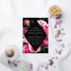 Élégante invitation à mariage floral avec vos détails mariages à l'intérieur d'un cadre diamant en feuille d'or avec un arrière - plan noir. Belle pivoine rose vif et rose vif avec des feuilles verts luxuriants. Les invitations de mariage en feuille d'or et en pivoine s'inversent à un arrière - plan noir avec de l'espace pour des textes et des images supplémentaires.