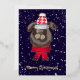 Un drôle de petit chien portant un casquette tricoté et une écharpe pour aller sous la neige. Pour souhaiter un joyeux Noël aux petits !