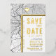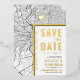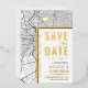 Une carte d'invitation unique à jour avec une carte de la ville de Philadelphie, Pennsylvanie. Il présente plusieurs caractéristiques uniques qui font une impression sur votre futur invité, y compris les noms de la mariée et du marié, le nom de la ville, et les mots "Save the Date" en feuille d'or. Un symbole de coeur en feuille d'or indique votre emplacement de l'amour dans la ville. La carte de la ville est à l'avant et à l'arrière et peut être mise à l'échelle et déplacée autour. Tous les éléments de cet invitation sont déverrouillés, alors amusez-vous d'être créatif et de le faire correspondre à votre style.
