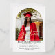 Partagez vos nouvelles excitantes d'une manière moderne et digne d'être conservée avec l'invitation de fin d'études à motif d'arc moderne en feuille dorée "Photo". Imprimé sur du papier blanc avec un texte noir net, ce design présente un arc moderne épuré et une écriture élégante « diplômé » en feuille d'or pour une finition raffinée et lumineuse qui procure une sensation extraordinaire.