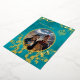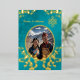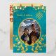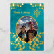 Cette élégante faire-part de mariage tibétaine présente une photo ronde entourée de vrais branches de fleurs de cerisiers en feuille d'or et un véritable noeud sans fin en feuille d'or sur un arrière - plan floral chatoyant turquoise. Noms de mariée et de mariée dans un élégant script classique.