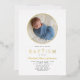 Photo personnalisée Religious Cross Boy Baptism Gold Foil Invitation.