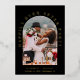 Invitation élégante de fuite ou de mariage privé et invitation à la réception présentant votre photo dans un cadre cintré et "Fête pour toujours heureux" en typographie élégante en feuille d'or véritable. Ajoutez vos prénoms, date de mariage et lieu. Au verso, personnalisez votre annonce de mariage et invitation à la fête ou à la réception et ajoutez vos noms dans une écriture semblable à une signature.