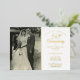 Personnalisez avec votre photo de mariage préférée et les détails de votre célébration spéciale de vos 50 ans d'anniversaire de mariage en or avec une typographie chic en feuille d'or. Le verso présente des confettis en forme de cœur en or. Conçu par Thisisnotme©