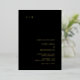 Carton d'invitation de mariage moderne avec une mise en page simple et minimaliste avec votre monogramme dans le coin supérieur gauche et les détails de votre mariage dans le coin inférieur droit. Tous les éléments de design sur le devant sont en véritable feuille d'or sur fond noir. Le dos comporte votre photo préférée. Ce carton d'invitation de mariage chic avec un design minimal mais élégant convient à tout style de mariage contemporain.