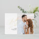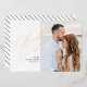 Cette invitation moderne de sauvegarde de la date comprend un script de calligraphie moderne en feuille d'or avec un support rayé. Téléchargez votre propre photo et personnalisez les informations pour inclure les détails de votre mariage.