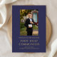 Photo Elégante Marine Blue Boy First Communion Gold Foil Invitation.