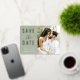 Invitation En Aluminium Photo Moderne Sage Vert Script Enregistrer La Date