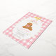 Planning a girl’s golden doodle first birthday? This editable foiled pink and yellow gingham invite showcases a hand drawn golden doodle doggy, sweet foiled scallop border and bow, and the phrase “One Golden Year.” Set the perfect tone for a tail wagging celebration they’ll never forget.
