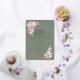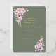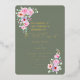 Send out this beautiful gold foil wedding invitation in Warm Eucalyptus Green with pink roses in the corners.
