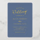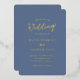 Faire-part de mariage de style classique au design simple avec une touche moderne. Les mots d'accents sont dans un élégant script de brosse et les noms de la mariée et du marié sont dans une police serif traditionnelle. Tous les éléments de conception à l'avant sont en papier d'aluminium. L'arrière - plan est en bleu poussiéreux et peut être modifié en n'importe quelle couleur dans l'outil d'édition de conception. La configuration minimale de cette invitation en fait un endroit idéal pour un mariage formel.