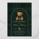 Drawing inspiration from polo club elegance and classic equestrian tradition, this teddy bear themed invitation sets the stage for a sophisticated baby shower with enduring appeal. A rich palette of deep navy and forest green, accented by a graceful statement bow, creates a look that feels both heritage-inspired and effortlessly luxurious.