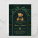 Drawing inspiration from polo club elegance and classic equestrian tradition, this teddy bear themed invitation sets the stage for a sophisticated baby shower with enduring appeal. A rich palette of deep navy and forest green, accented by a graceful statement bow, creates a look that feels both heritage-inspired and effortlessly luxurious.
