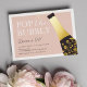 Pop le champagne ! Les invitations à la fête d'anniversaire pour les anniversaires d'étape, la fête du 21e anniversaire ou toute célébration d'anniversaire comportent une bouteille de champagne en papier noir et or avec les mots "pop the bubbly" en lettres blanches chic. Personnalisez avec les détails de votre fête en dessous.