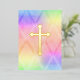 Invitation En Aluminium Première communion aquarelle Croix arc-en-ciel