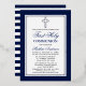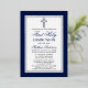 Elégant Marine Bleu et Or Première Sainte Communion Invitation avec Croix. Cadre à huile d'argent. Croix de pétrole en argent. Refusé.