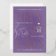 Une invitation bachelorette violette convenant à une reine, cette invitation typographique moderne est élégant et amusant avec un détail anneau fiançailles et une disposition de texte intelligente le tout avec un texte en feuille métallique brillant pour lui donner ce punch extra de glam. Ajoutez un site web et plus de détails de célébration à l'arrière pour que les filles obtiennent tous les détails en un seul endroit.