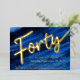 Quarante abstrait saphir bleu art arrière - plan avec un texte de feuille or ou votre propre couleur de feuille. Personnalisez ce script de fête de 40e anniversaire d'art jalon invitation anniversaire avec vos propres détails de fête d'anniversaire, et une photo de votre fille d'anniversaire au verso. D'autres années, des couleurs et des articles assortis sont disponibles. © Design original par Sarah Trett pour www.mylittleeden.com sur Zazzle.
