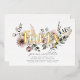 Fleurs aquarelles modernes et feuilles bohèmes avec le mot 'quarante' en véritable feuille d'or. Parfait pour votre fête d'anniversaire!