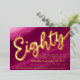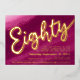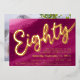 Quatre-vingts pinces d'art audacieuses lavent dans un arrière - plan rose rouge profond avec un texte de feuille d'or ou votre propre couleur de feuille. Personnalisez ce script de fête de 80e anniversaire d'art jalon invitation anniversaire avec vos propres détails de fête d'anniversaire, et une photo de votre fille d'anniversaire au verso. D'autres années couleurs et articles correspondants sont disponibles. © Design original par Sarah Trett pour www.mylittleeden.com sur Zazzle.