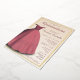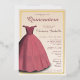 Cette invitation à la fête de quinceañera présente une belle robe rouge peinte à la main sur un arrière - plan gris rétro avec un cadre en feuille dorée. Vous pouvez customiser toutes les phrases de texte à votre goût.