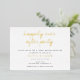Invitation à la réception de mariage pour une fête de fin heureuse. L'invitation de réception recto-verso comporte le texte "fête de fin heureuse" en faux papier d'or sur la face avant et une photo des jeunes mariés au verso. Personnalisez avec votre photo horizontale au verso ou laissez vide si aucune photo n'est souhaitée.