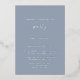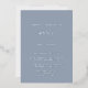 Invitation simple pour la réception de mariage uniquement, avec une typographie élégante et la mention "Happily Ever After Party" en véritable feuille d'argent sur fond bleu poussiéreux. Cette invitation moderne pour la réception de mariage uniquement est idéale pour un couple déjà marié qui souhaite célébrer avec ses amis et sa famille après s'être enfui.