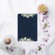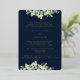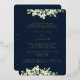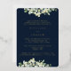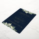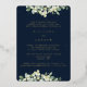 Une invitation à la répétition de mariages de la marine noire, pour quand les événements sont tous basés au même endroit. Doté d'une bordure de neiges peintes à la main et de tiges d'eucalyptus. Le texte et les points dispersés sur le devant de la carte sont pressés à l'envers. Veuillez consulter cette collection dans mon magasin pour d'autres arrangements floraux, différentes couleurs et pour la coordination des articles.