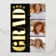 Faites une déclaration avec cette feuille d'or audacieuse sur l'invitation de graduation de 2025 d'inspiration rétro noire ! Doté d'un grand lettrage vertical "GRAD", d'une typographie ludique et d'un espace pour quatre photos personnelles, ce design est une façon amusante de célébrer le jalon. La mise en page est entièrement modifiable : modifiez les couleurs et les détails pour qu'ils correspondent à la personnalité et au thème de l'événement de votre diplômé. Parfait pour les diplômés modernes qui aiment un brin de vintage flair et beaucoup de photos à partager.