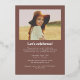 C'est une invitation rétro et boho à la remise des diplômes de l'université en utilisant une police rétro audacieuse en papier d'aluminium pressé en or ainsi qu'une seule photo minimaliste. L'envers comprend un message que vous pouvez personnaliser, ainsi qu'une autre photo. Cette conception applique un filtre à votre photo, pour modifier ou supprimer ce filtre appuyez sur le bouton bleu modifier la conception et accédez aux paramètres du filtre. Veuillez contacter le concepteur pour toute question relative à ce design.