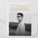 Tapis cursive d'inspiration rétro de lettres "Graduate" avec photo de fond plein. Choisissez votre couleur de feuille, or, argent ou or rose. Modifiez les détails sur le côté arrière, créez une invitation, ou annoncez les plans futurs, ou ajoutez des photos à votre guise.