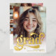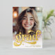 Célébrez le diplômé en style avec cette feuille d'or chic et l'invitation de graduation blanche. Doté d'un script rétro audacieux à l'avant et de quatre emplacements photo élégants à l'arrière, ce design moderne et intemporel est parfait pour annoncer votre grande réussite. Idéal pour les diplômés du secondaire ou du collège, cet invitation donne le ton d'une célébration élégante.