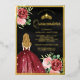 Invitation En Aluminium Robe Florale Bourgogne Noir Quinceanera Or