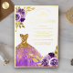 Invitation En Aluminium Robe Florale pourpre Éperche Quinceanera Or