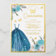Invitation En Aluminium Robe florale Turquoise Papillon Quinceanera Or