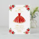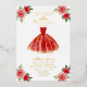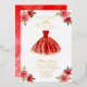 Elégante robe rouge, invitation à la fête du 15ème anniversaire fleurie.