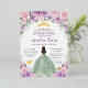 Cette élégante invitation en véritable feuille d'or présente de beaux lilas violets, des roses pâles florales, une fille vêtue d'une robe verte sauge, des papillons et des accents dorés chic. Personnalisez-la facilement et rapidement, il suffit de cliquer sur le bouton "Modifier à l'aide des outils de conception" pour modifier le texte, la formulation, le style de police, la taille de police et la couleur de police. Vous pouvez également ajouter ou supprimer du texte, et déplacer ou supprimer des images. Les papillons, la fille et la couronne sont déplaçables, redimensionnables, duplicables et amovibles, vous permettant de personnaliser le design pour l'adapter à votre occasion. Parfait pour les Quinceañeras, les Sweet 16, les fêtes d'anniversaire de 18 ans, les Bat Mitzvah et bien d'autres célébrations ! Également disponible en télécharg