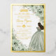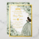 Personnalisez facilement et rapidement cette élégante invitation en feuille d'or avec des fleurs vert sauge pour une Quinceañera / un anniversaire Sweet 16. Cliquez simplement sur le bouton "Personnaliser davantage" pour modifier les textes, changer les polices et les couleurs de police. Caractérisée par de douces fleurs vert sauge à l'aquarelle, une fille vêtue d'une belle robe de bal vert sauge et d'une couronne de princesse dorée. Parfait pour une quinceañera, un sweet sixteen, un 18e anniversaire, un bal de débutantes et bien d'autres occasions ! Articles assortis disponibles en magasin. (c) Somerset Fine Paperie