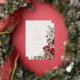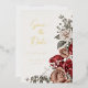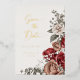Classic traditional and elegant spray of warm red, antique white and tan roses, baby's breath and eucalyptus on a cream watercolor style background with custom gold foil calligraphy Save the Date script and editable text fields. Back features complementary graphics and additional text fields.