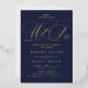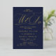 Doté de luxueux motifs dorés et d'une bordure bleu marine profonde, ce design allie élégance classique et romantisme moderne. Parfait pour les mariages officiels, les cravates noires ou les cérémonies du soir, cette invitation peut être customisée avec vos noms, date et détails mariages pour refléter votre histoire d'amour unique.