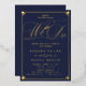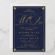 Doté de luxueux motifs dorés et d'une bordure bleu marine profonde, ce design allie élégance classique et romantisme moderne. Parfait pour les mariages officiels, les cravates noires ou les cérémonies du soir, cette invitation peut être customisée avec vos noms, date et détails mariages pour refléter votre histoire d'amour unique.