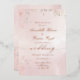 Un romantique et élégant rose vif et doré rose faire-part de mariage avec une aquarelle peinte onirique rose rosé arrière - plan de jardin avec vos noms et détails en vrai Rose Gold Foil dans un script mariage classique.