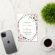 Cette faire-part de mariage géométrique à floral rose or à l'avant et à l'arrière est parfaite pour un mariage rustique. Le design présente d'élégants roses poussiéreux aquarelle et feuillage vert, soigneusement assemblés en de beaux bouquets, décorant un cadre géométrique charmant. Enregistrez du papier en incluant plus de détails au verso de l'invitation plutôt que sur une carte de boîtier séparée.