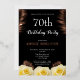 Yellow Rose Tropical Feuilles 70e anniversaire Gold Foil Invitation. Invitation d'anniversaire avec de belles roses jaunes et feuille d'or feuilles tropicaux sur arrière - plan noir. Le nom est aussi feuille d'or. Parfait pour une femme qui fête son soixante-dixième anniversaire.