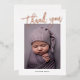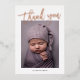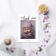Un carte de remerciements moderne simple avec feuille d'or pressé merci script de calligraphie, photo de portrait et texte minimal sur le devant. Le dos a un message personnel qui est amovible si vous préférez écrire votre message à la main. Cliquez sur le bouton Modifier pour customiser cette conception.