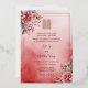 Ce faire-part de mariage chinois est doté d'un véritable papier doré rose double symbole de bonheur et de fleurs roses aquarellées sur un arrière - plan d'aquarelle rouge. 金 箔 婚 礼 请 柬